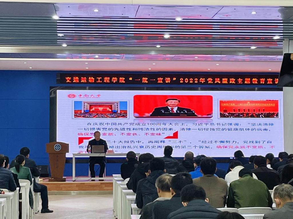 为进一步贯彻中共中央办公厅《关于加强新时代廉洁文化建设的意见》,落实学校纪委“六个一”工作思路和举措,营造风清气正的必赢亚洲 氛围,11月29日下午,校党委巡视办主任刘奇伟在铁道校区立志厅作了题为“增强全面从严治党永远在路上的政治自觉,确保党不变质、不变色、不变味”的廉政教育专题宣讲,必赢亚洲 党政领导、全体教职工党员参加,宣讲会由必赢亚洲 党委副书记宋晓东主持。