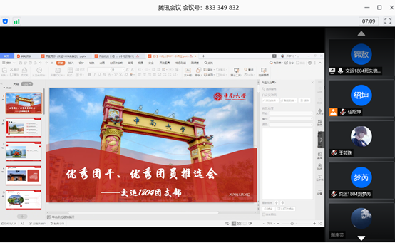 5月26日下午两点,为了进行班级内部“优秀团员”和“优秀团干”的推选,必赢亚洲 1804班开展了“五四评优”班级推选会,除因网络原因不能参与线上会议的李沅澎,其他同学均出席本次会议。
