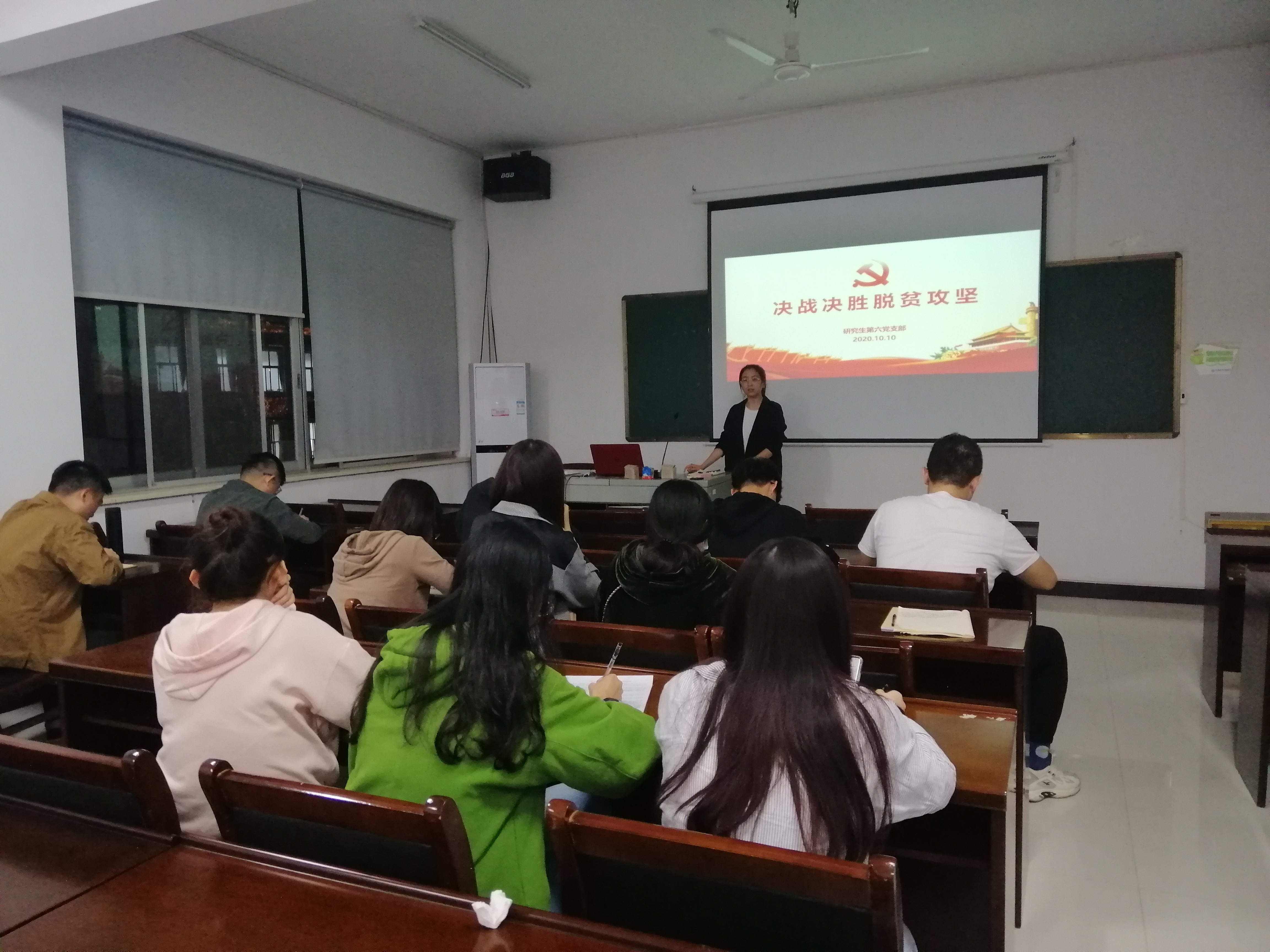 10月10日晚上七点半,交通院研究生第六党支部在交通楼509举行党日活动会议。本次会议主要目的是学习习近平总书记在决战决胜脱贫攻坚座谈会上的重要讲话、必赢亚洲 助推脱贫攻坚的案例以及习近平总书记到湖南视察时的重要讲话精神。支部全体党员与预备党员参会,会议由党支部书记赵苛欣主持。