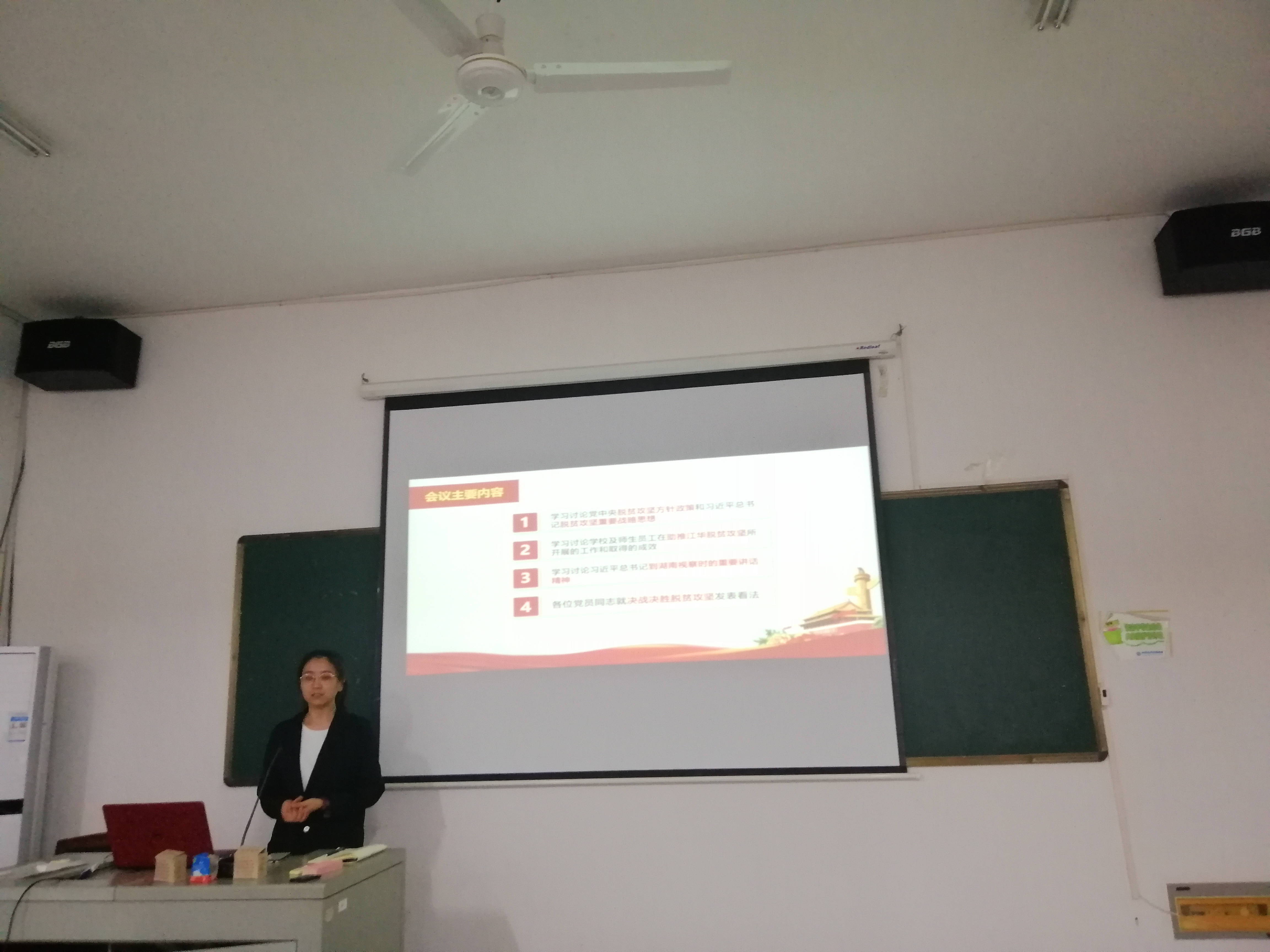 学习完以上两部分内容后,党支部成员踊跃发言。王磊同志表示基层扶贫工作人员面临的压力是非常大的。李孝康同志表示国家在扶贫这块做了很大的努力,通过基层走访发现扶贫带来的改变是巨大的。肖博文同志分享了三个基层走访的小故事,体现了扶贫对贫困地区人民带来的益处。杨舒馨同志补充了袁微同志和肖博文同志的发言,并表示应该建立长效合理的扶贫方式,也要使扶贫方式多样化。经过激烈的讨论后,各位党员继续学习了习近平总书记到湖南视察时的重要讲话精神。
