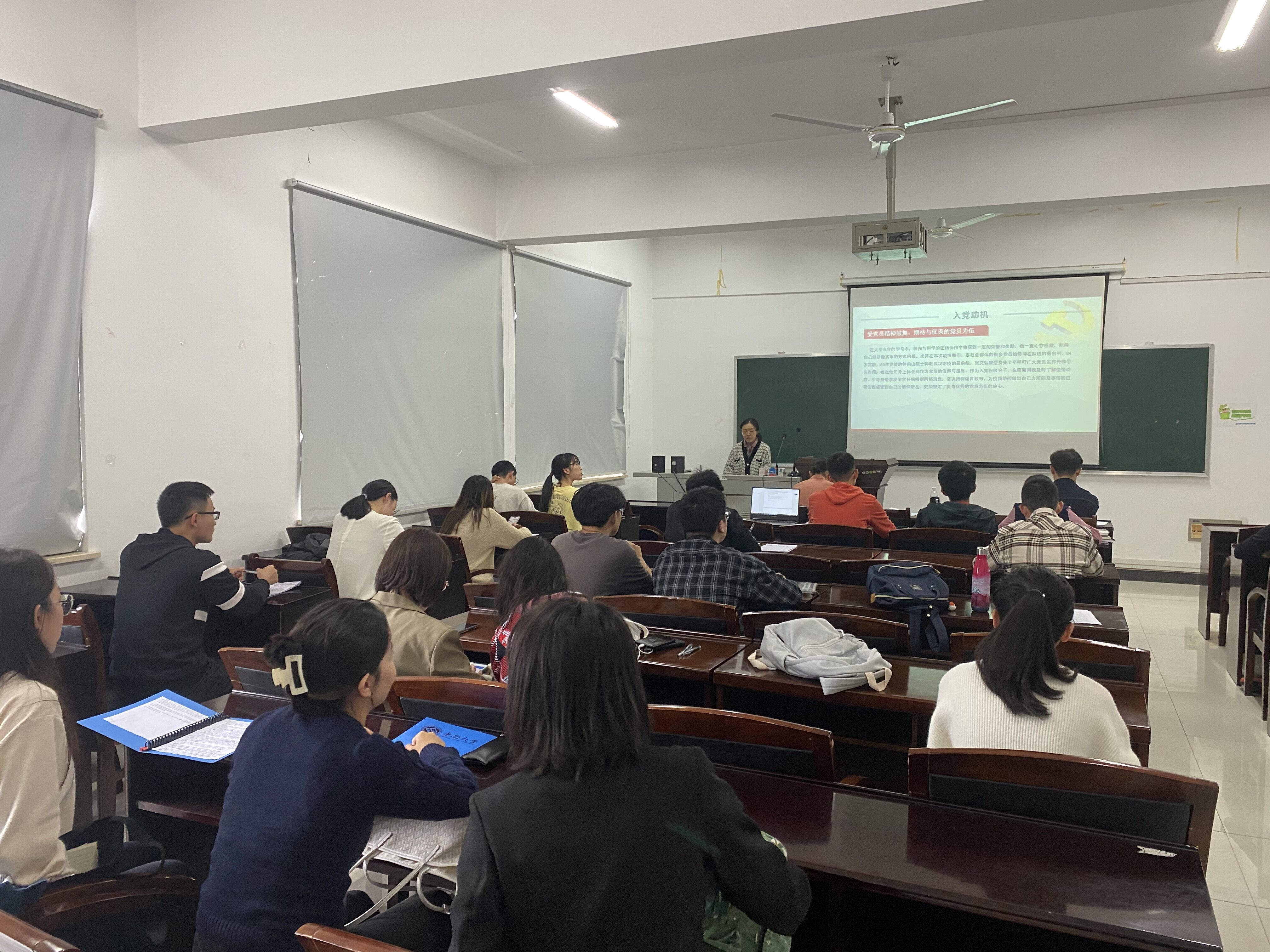 候选人汇报完毕后,石晓琪同志总结此次会议,对同志们各具特色的发言表示充分肯定。她强调,同志们要将理论学习和自我实际结合起来,向党组织深刻地反省自己,要坚定理想信念这一共产党员的精神支柱。同时支部一直在坚持建设学习型党支部,从学“三史”到现在学“四史”,理论知识的学习不能落下。此外,同志们要重视自己专业知识的学习,专业成绩并不是发展的标准,但却是学生党员发展考核的组成部分,是学生党员在同学中发挥先锋模范作用的一种重要方式。最后,石晓琪同志提到此次汇报就是一个相互学习、相互促进的过程,无论结果如何都希望各位同志能继续向党组织表明坚定的决心,在各方面不断完善自己。