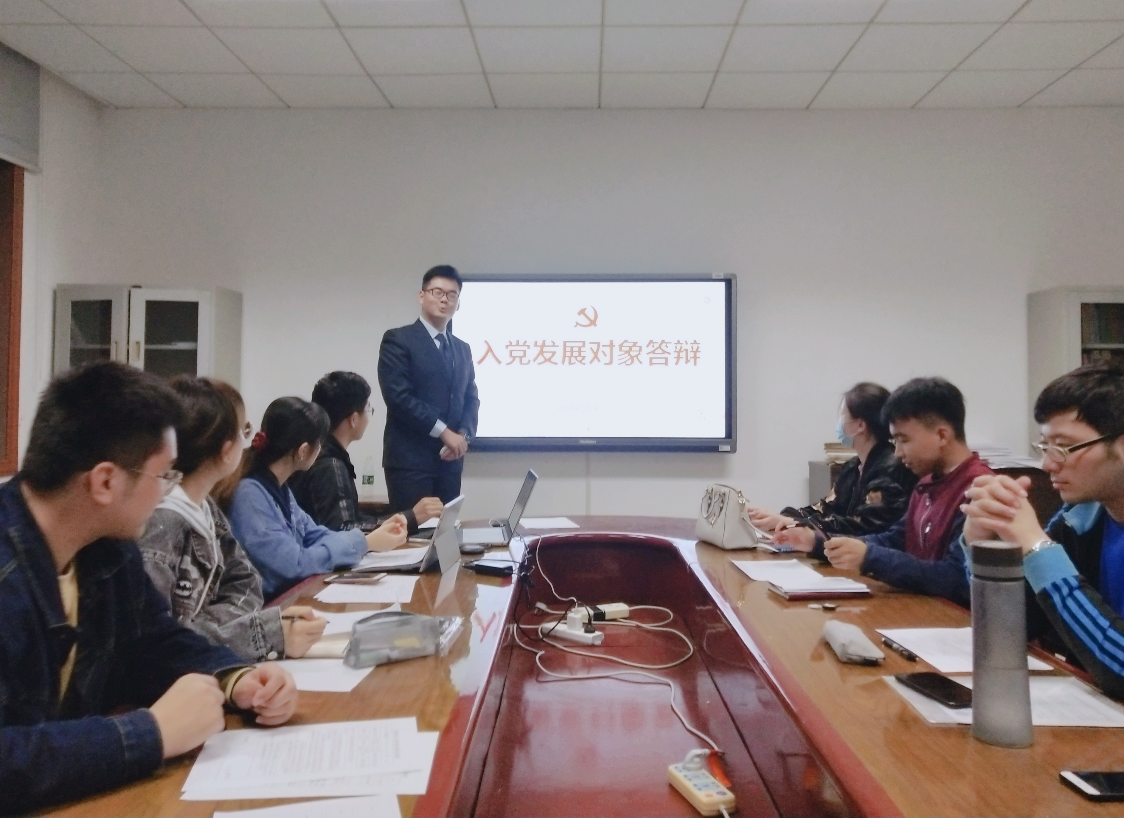会议伊始,赵世越同志介绍了本次入党发展对象答辩会议的主题和流程。答辩分为自我介绍和提问两个环节,答辩次序按照颜佳慧、刘萱婷、余越、王德鹏、许乘浩、张楚瑶、李致远依次进行。在自我介绍环节,各位发展对象候选人本着实事求是的原则,对自身学习、工作、生活和社会实践等情况展开了细致认真的介绍,体现了他们积极向党组织靠拢的决心和对入党初心的坚守。在随后的提问环节中,支部各位党员结合各候选人的个人实际情况,从理论基础和时政热点等角度分别进行了提问。