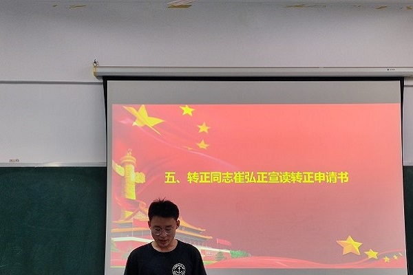 会议伊始,黄晴同志介绍会议流程及要求。随后,张静、孙光宇、陶世锬、郭智、崔弘正、郭秉筠六位同志依次宣读转正申请书,入党介绍人介绍其基本情况,支委会报告其在预备期内的教育考察情况,最后与会党员同志发表意见。六位同志均在申请书中向党组织汇报了预备党员期间的思想、学习、工作和生活情况并总结了自身的优势和不足。