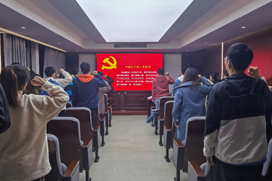 最后,支部书记蔡明旭同志带领新发展的党员进行了入党宣誓,原支部党员重温入党誓词。支部书记蔡明旭同志对新接收的预备党员表示祝贺,并希望大家在今后的生活、学习中,能以更加严格的标准要求自己,牢记组织的教导,把入党的荣誉感真真切切落实为为人民服务的责任感,用实际行动践行党旗下的誓言。