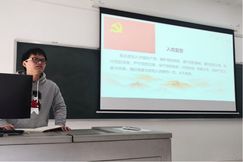 会议伊始,黄湘智同志介绍了本次会议的主要流程及注意事项,强调了会议的原则性和政治性。紧接着,申慧涛、史云涛、涂茨、张金宝、李肖如五位同志依次上台作了汇报。申慧涛同志在学习之余参加志愿活动,积极向党组织靠拢。史云涛同志从红船精神谈起,深入讲述自己加入党组织的原因,以及成为入党积极分子后思想的转变。涂茨同志勇于在实践中纠正自身的错误,在思想上树立正确的人生观、价值观。张金宝同志则从自己的家庭谈起,结合自身的经历讲述了自己加入党组织的动机。李肖如同志在经过深入的党课学习后,端正了自己的入党动机,明确了自身的职责。