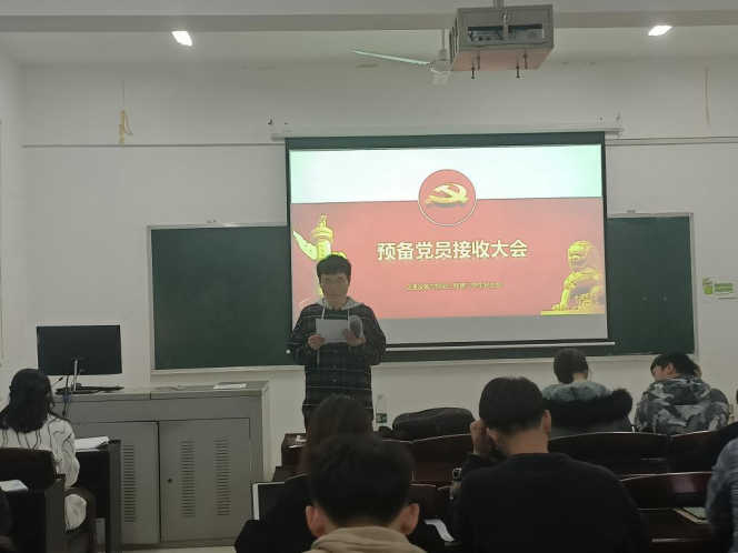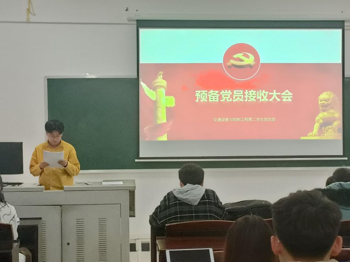 12月5日下午6点30分,交通设备与控制工程第二学生党支部在交通楼515教室举行了预备党员接收大会。支部全体党员同志及发展对象参加此次会议,会议由刘斯源同志主持。