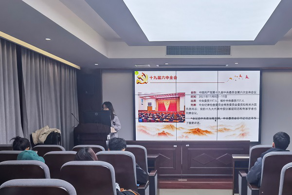 会议伊始,主持人向大家阐述了十九届六中全会的举办情况及会议的主要事项,并就六中全会通过的《中共中央关于党的百年奋斗重大成就和历史经验的决议》及十九届六中全会精神进行了具体的讲解。