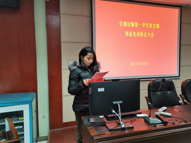 第一学生党支部在交通楼513召开预备党员转正大会。支部全体成员出席本次会议,会议由支部副书记靳凤悦同志主持。
