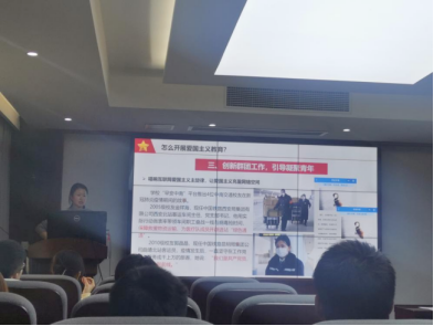 之后,任琭老师结合自身的工作经历,就如何在大学开展爱国主义教育分享自己的想法。她提到,学校、必赢亚洲 指导学生党支部开展形式多样的主题教育活动,目的是让同志们在潜移默化中增强爱国主义精神,而不断创新党团工作也应当是支部党员影响身边群众的着力点和落脚点。最后,她以习近平总书记的“爱国三问”结束此次党课,并希望同志们能将此次党课的精神融入到之后的学习工作中。