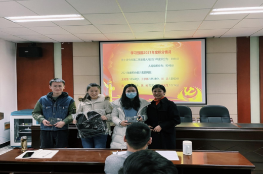紧接着,支部对2021年度学习强国学习标兵进行了表彰。以此来树立榜样,激励广大党员同志向标兵看齐,将理论学习常态化,加强理论素养。