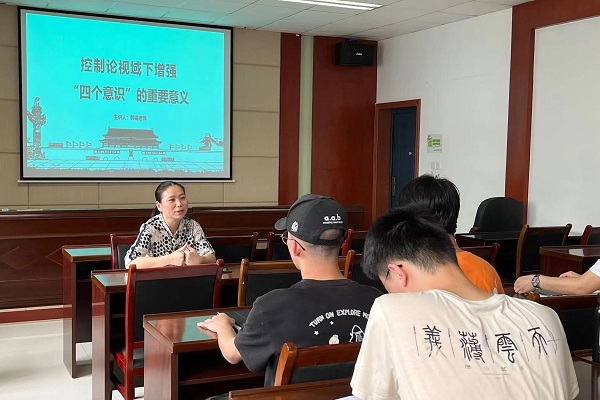在对控制论有了基本的了解后,韩老师开始阐述控制论视域下的“四个意识”。韩老师讲到,“四个意识”包括政治意识、大局意识、核心意识和看齐意识。在政治意识上,党员同志要优化自身系统参数,坚定政治信仰,站稳政治立场,深化理论学习,将理论与实践相结合;在大局意识上,党员同志要把握系统大局,把工作放到大局中去思考,养成良好的大局观、全局观;在核心意识上,党员同志要牢牢把握系统的“控制器”,思想上认同核心、政治上围绕核心、组织上服从核心、行动上维护核心;在看齐意识上,党员同志要始终向系统核心看齐,向党中央看齐、向党的理论和路线方针政策看齐,听党话,跟党走。最后,韩老师强调,党员同志要发挥好先锋模范作用,真正成为一面旗帜。