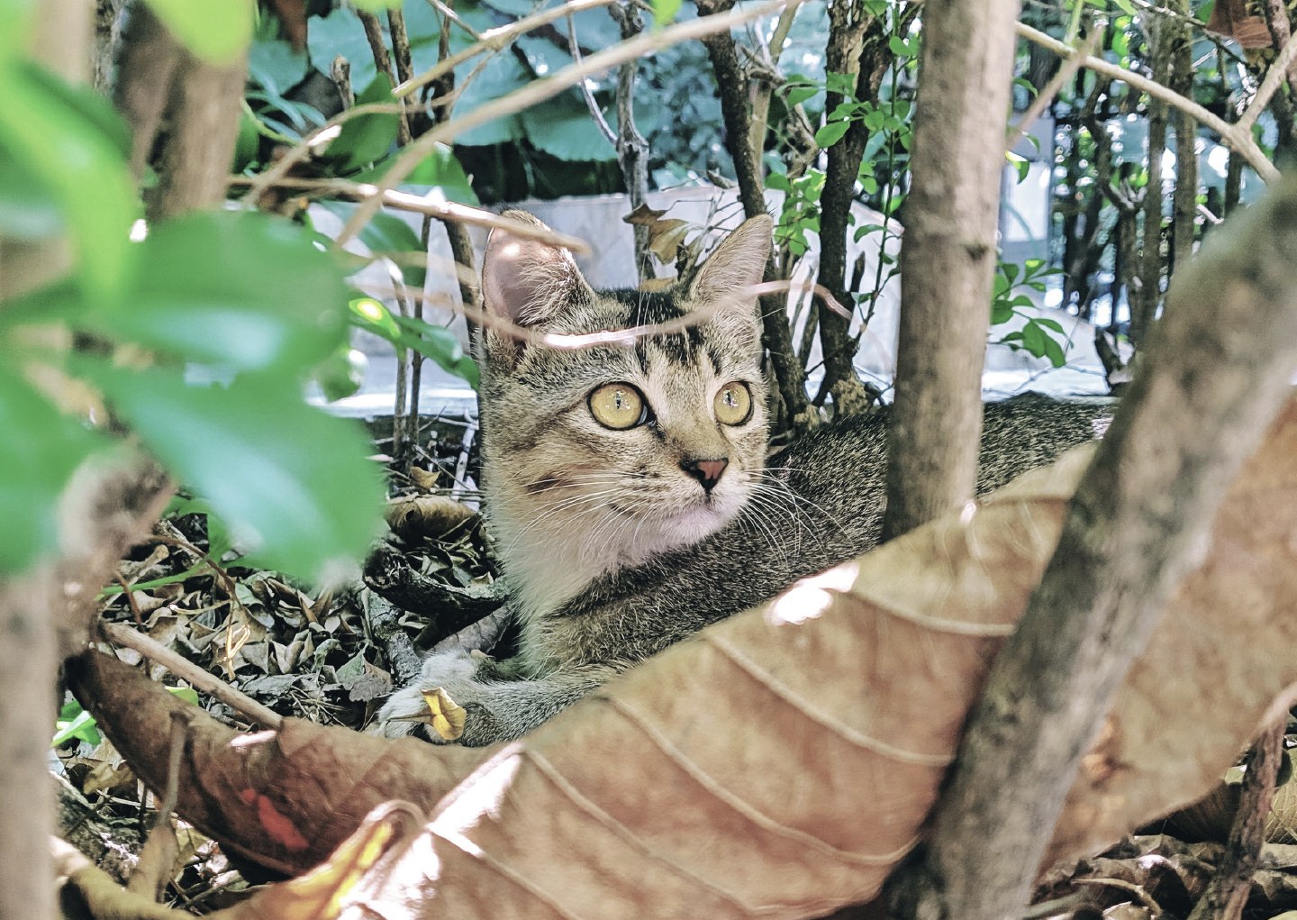 在树旁,慵懒的小猫伸出粉嫩的舌头,开始清理夜晚悄然降临的点点尘土。随后,它捧起了一把阳光,耐心而温柔地将阳光嵌入毛发中。待一切完毕后,它便愉悦地伸展双手,拥抱阳光,阳光也乐得不行,毫不矜持地迅速落入了小猫的怀抱。