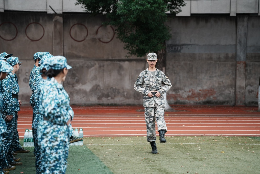 古之立大事者,不惟有超世之才,亦必有坚忍不拔之志。教官们正是这信念的化身,他们将军人的严谨作风与钢铁意志毫无保留地倾注于每一次示范、每一次讲解中。军姿定型时,他们细致地为同学们纠正动作,汗水浸透衣背却浑然不知;队列训练中,那一声声洪亮的口令充满力量,穿透云宵,激荡着每一位学子的心魄。然而,铁血之外,亦有柔情。训练时,他们是严格要求的 “冷面教头”。