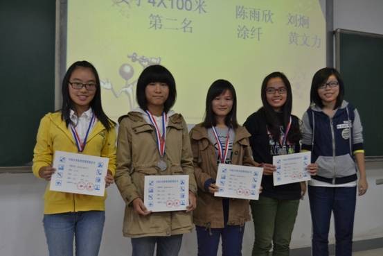 两位代表发言结束后,全运会的颁奖仪式就正式开始了,田径比赛的奖项由分团委书记孙瑞琦和团委学生会主席岳显分别颁发给了运动员陈雨欣、涂纤、和黄宇琪。其余奖项则由到场的其他嘉宾一一颁发其。