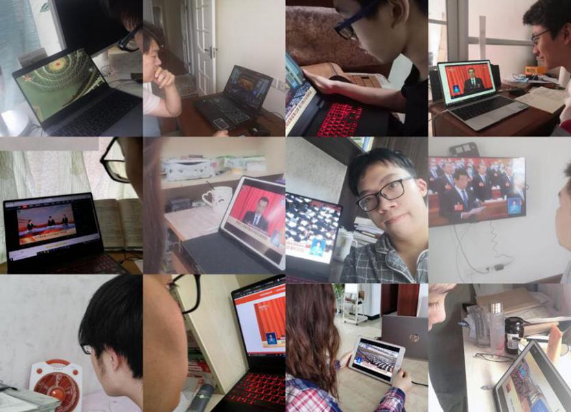 5月22日上午九点,全国人大正式开幕。由于受到疫情的影响,同学们无法一同在教室观看会议直播,所以在形势与政策课上,辅导员黄永明老师特意留出一部分时间,让同学们自行观看直播。会议开始,同学们跟随现场的主席团、代表们一同唱国歌,并对在疫情中逝去的烈士与同胞表示哀悼。会议结束后,同学们认真学习李克强总理的政府工作报告,有体育课的同学也及时观看回放,实现了全员观看的目标。