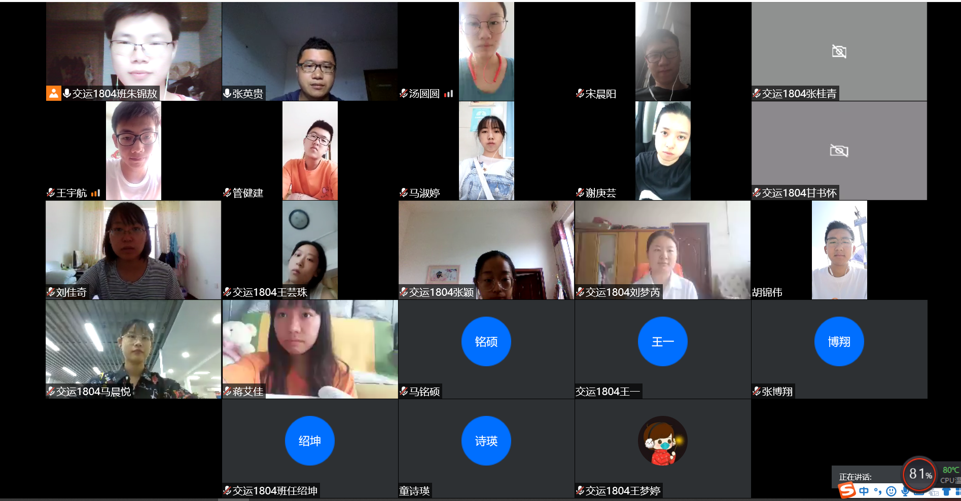8月7日早上9点,必赢亚洲 1804班开展了一次线上班会暨期末复习动员会,本次班会旨在动员同学们为即将到来的期末考试做好复习计划,组织督促大家高效有计划地进行复习,并对相关班级工作进行部署。班导师张英贵老师受邀参加此次线上班会,班长朱锦敖同学为会议主讲人,班级同学实到22人,请假2人。