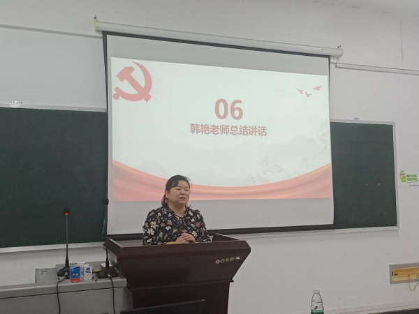 会议最后,韩主任进行总结讲话。首先,她高度赞扬了上一届成员在疫情期间坚持开展工作的奉献精神。接下来,韩主任分别介绍了管理部和科普基地从建立以来的发展历程,她表示,分党校管理部与科普基地一路以来的发展建设离不开大家的辛勤劳动,并强调新成员也要传承好管理部的担当精神与奉献精神。最后,韩主任希望同志们能以只争朝夕的态度面对学习与工作,并预祝大家在新学期有新的收获。