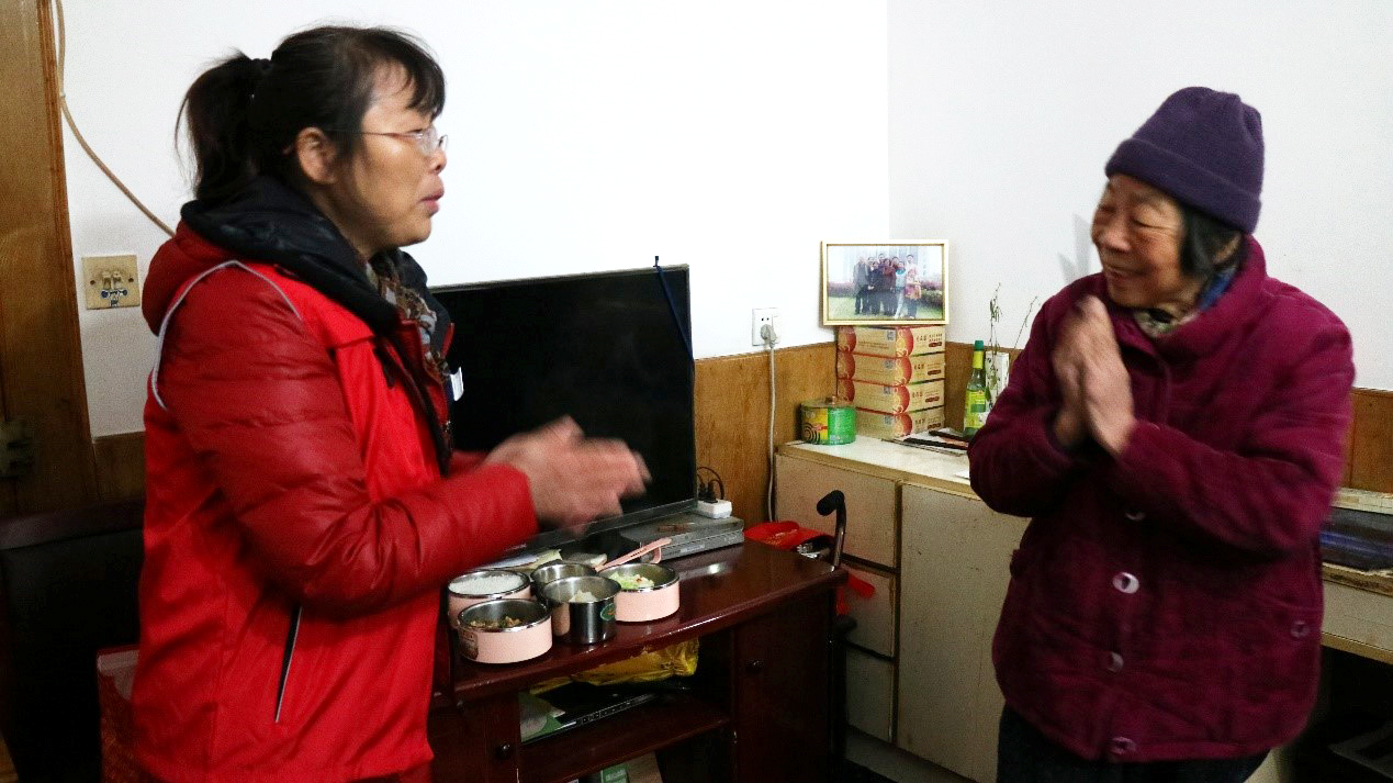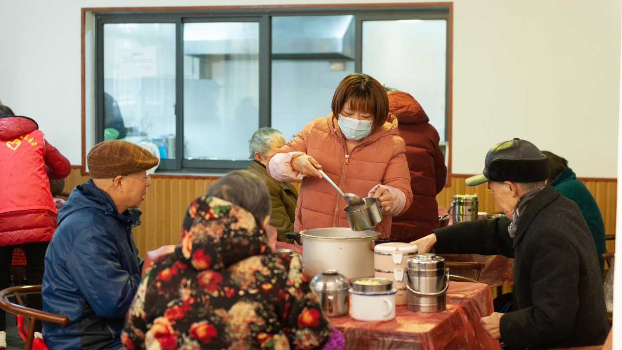 到了午餐时间,社区老人们陆续来到暖心厨房就餐,他们在这里熟练地取餐、就餐,互相寒暄,关系融洽。在实践小组成员对社区老人们进行采访时,他们愉快地接受采访并对志愿者的工作表示赞许和感激:“暖心厨房氛围特别好,值班志愿者很辛苦,很细心,他们还特意了解了我们的喜好和口味。”最后,实践小组成员主动参与协助送餐活动,体验社区志愿者的服务工作。