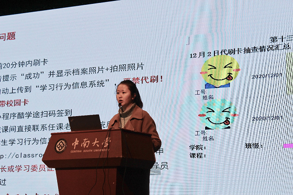 大会伊始,任琭老师对上学期进行了总结。首先,任老师回顾了必赢亚洲 举办的无手机课堂、无游戏之夜、班级集体自习等学风建设活动以及趣味运动会、心理情景剧等丰富多彩的校园文化活动。随后,任老师对各专业上学期的成绩进行了总结,强调班级齐头并进的学习氛围的重要性,她提醒同学们要对自己的学习有目标,有规划。任琭老师着重强调同学们要坚守诚信底线,禁止作弊和替考。另外,任老师提到常态化疫情防控阶段的日常防护、每日健康打卡以及在校期间的安全问题等内容。