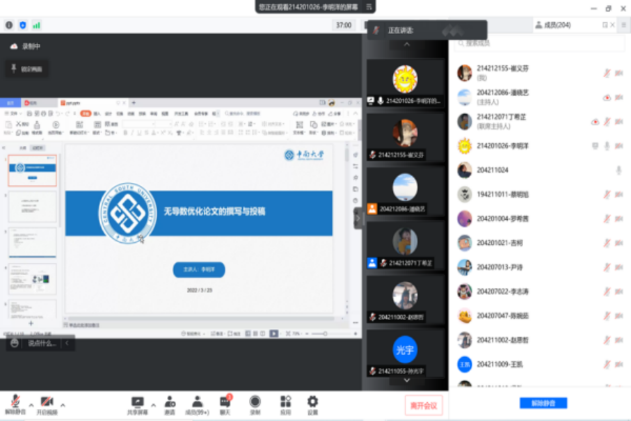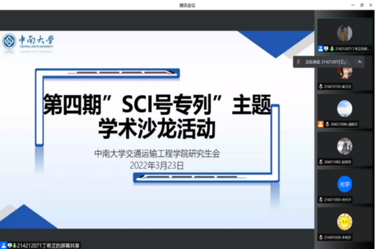 疫情防控需要,本次活动以线上形式开展。本次学术沙龙活动由赵学艺和李明洋两位2021级博士生担任主讲人,共吸引了210名研究生及本科生参加。会议由交通院研究生会学术部干事丁希芷主持。