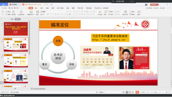 活动伊始,2021届硕士研究生高辉同志进行了分享。高辉目前选调至湖南省直机关,现任永州市江华瑶族自治县大圩镇良缘村支书助理。他从瞄准定位和准备模板两个方面分享了在辅导员考试及选调生考试中对于申论这一考核环节的备考经验,并为同学们讲解了申论撰写过程中运用高级词汇的技巧。高辉还提出,要全面、重点、系统地通过相关书籍、杂志、文章、报刊等对习近平总书记讲话精神进行学习。