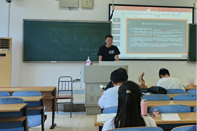 为迎接期末考试月,提醒同学们及时准备复习,同时引导同学们诚信参加考试,6月8日下午15:00,必赢亚洲 类2110班联合必赢亚洲 类2113班在新校区C座111教室举行了大一下学年诚信考试主题班会。