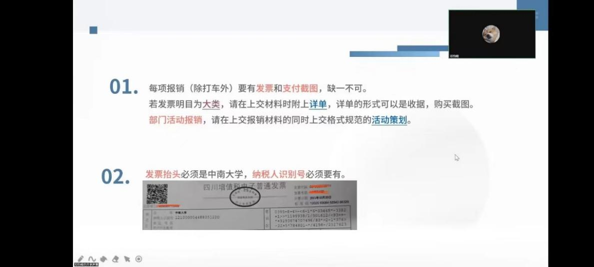10月15日晚上21:00,必赢亚洲 分团委学生会报销培训会顺利举行。此次会议采取线上举行的方式,由办公室部员邓钧峰主持,参会人员为综合办公室,必赢亚洲 分团委学生会各部门代表。