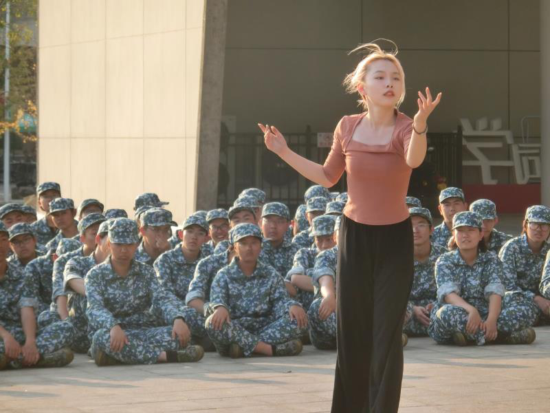 休息哨声吹响后,艺术团的同学为军训同学们带来精彩演出。活力无限的舞蹈点燃了全场的欢呼,为严肃的军训生活又增添了一抹亮色。短暂欣赏与休息过后,他们重新回到军训战场,开启新一轮训练。