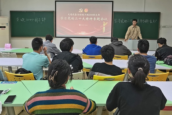 为加强团支部思想政治建设,学习宣传党的二十大精神,11月2日下午16:00,交通设备与控制工程2104班团支部在新校区A223教室举行学习党的二十大精神专题会议。团支部全体成员参加本次会议,会议由团支部书记马奕杨主持。