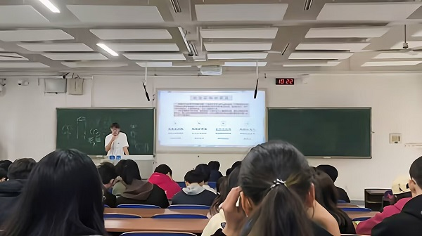 班会伊始,来自不同班级的同学开展了形式多样的暖场活动,如你划我猜、传声筒等,拉进了同学们的距离。游戏结束后,各班心理委员播放与各自主题相关视频,并就视频内容向同学们提问,进行真人演练或采访。同学们积极配合,踊跃发言,心理委员就同学们的想法进行总结之后开始主题讲解。各联合班级分别以做自己情绪的主人、恋爱憧憬与恋爱观、人际交往、认识自我为主题,进行了相关概念、常见误区和正确处理方法的讲解。兼具教育性与趣味性的讲解,让同学们对大学生活中各方面的知识有了更深入的理解。