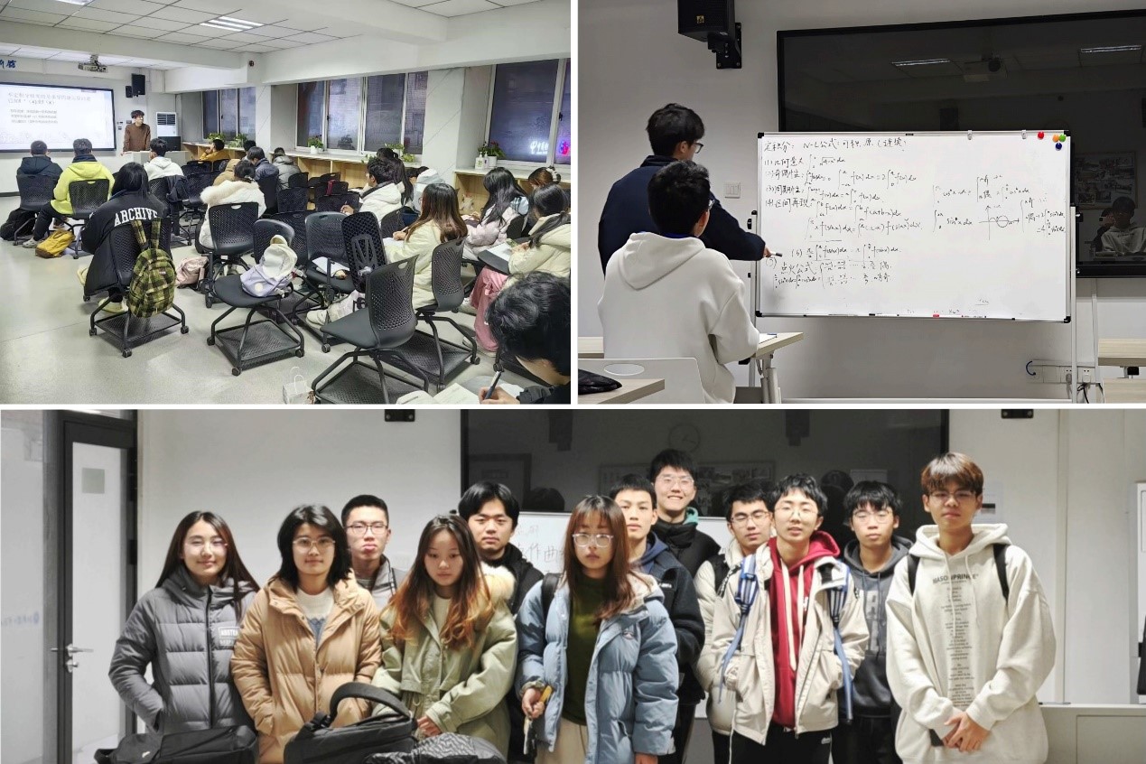 第四周课程的辅学义工分别为交运2314班周俊、交运2303班邹杨涵和交运2304班贾沛霖。1月6日,周俊同学带领同学们复习了工程制图的画法几何部分,他运用简洁清晰的语言解答了大家在学习制图过程中常见的困惑,增强了大家对工程制图学科的学习信心;1月7日,邹杨涵同学为同学们带来了一节组合体和机件图样复习课,他鼓励在座的各位同学随时提问,积极参与互动讨论,随后根据大家反馈的问题,适时进行答疑解惑;1月8日,贾沛霖同学带领同学们复习了无穷级数的相关知识,他构建知识框架,详细解析了无穷级数的概念、性质、收敛与发散的判别法等重要知识点。三位义工还向同学们分享了自己平时的学习方法和解题技巧,并结合往年真题深入讲解。同学们也在课程中受益良多,复习更加轻松高效。