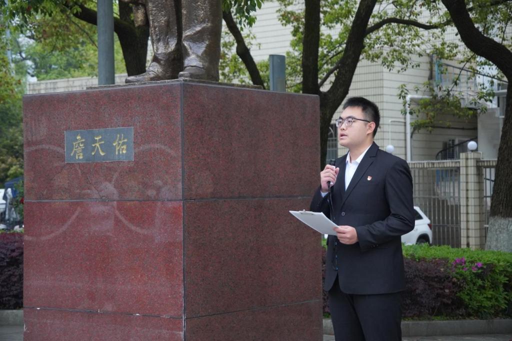 最后,谢瑞同志带领在场师生庄严宣誓。誓言字字铿锵,句句有力,全体交院师生定将铭记先辈事迹,将詹天佑先生的精神内化于心、外化于行。