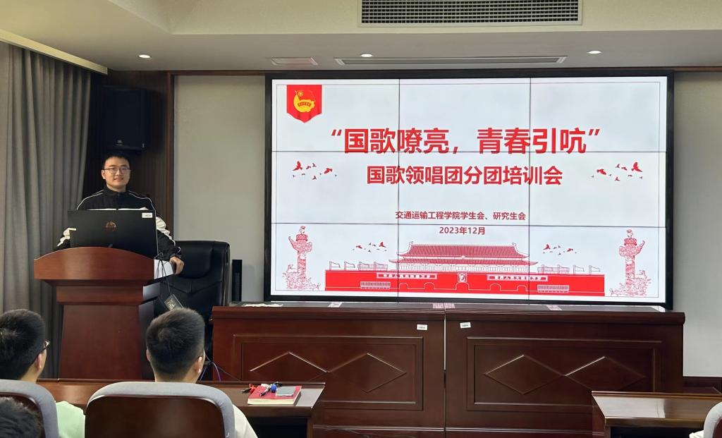 2023年12月15日上午,交通院团委、学生会、研究生会于铁道校区交通楼425召开以“国歌嘹亮,青春引吭”为主题的国歌领唱团分团培训会议。会议由院团委副书记黄昱辉主持,院团委书记张健及国歌领唱团分团核心成员参会。
