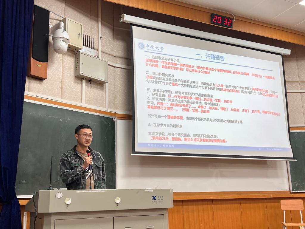 最后,研究生第三党支部的杜京润同志着重于开题报告的结构框架以及撰写过程中需注意的细节问题进行了分享,不仅补充完善了前面两位主讲人的分享内容,还以具体的写作要点为切入点解决了同学们实际撰写过程中所遇到的问题。作为即将毕业的学生,杜京润同志还鼓励同学们要提前思考自己的职业方向,选择最适合自己的路并为此做好充分的准备。