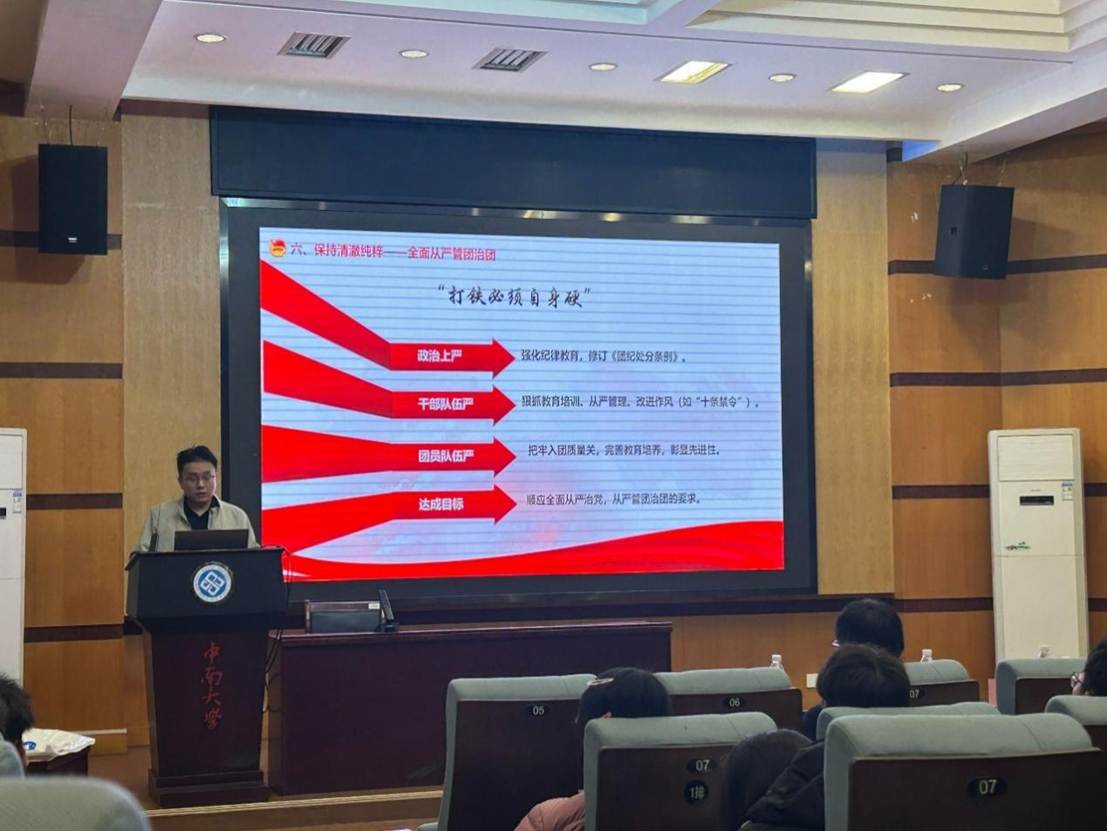 此外,蔡老师还对团干们提出了要求,各位团支书干部应保持自己思想的先进性和纯洁性,竭诚服务青年高质量发展,激发组织活力,纵深推进共青团改革。蔡老师还指出“打铁必须自身硬”,全面从严管团治团,发扬自我革命精神,推动“严”的氛围一贯到底。