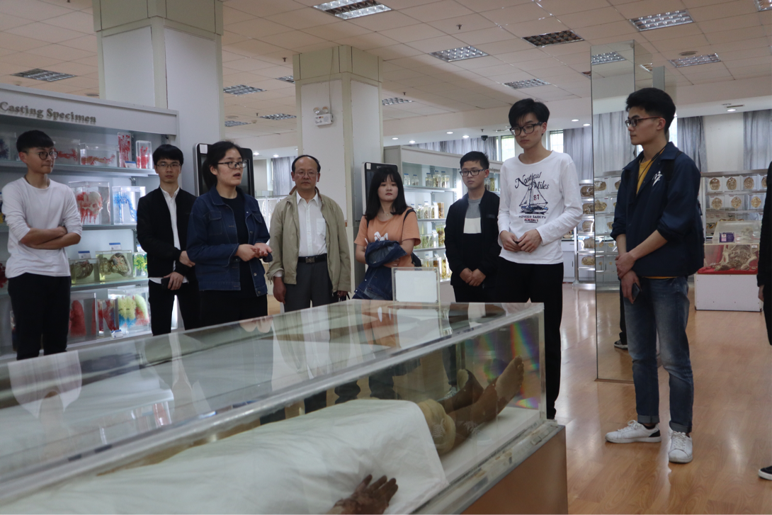 首先,由必赢亚洲 湘雅医必赢亚洲 的研究生志愿者带领大家,参观了位于湘雅医必赢亚洲 新校区医学形态楼一楼的人体形态学科技馆,科技馆面积400余平方米,科技馆按照人类起源、个体发生、人体形态分为三个区域、六个展区和一个多媒体演播厅,共有正常人体、病理及胚胎标本1200余件。科技馆拥有世界之最、身高2.43米的巨人遗体标本、清代干尸标本、封建社会妇女“三寸金莲”足骨标本、50-150万年前的脊椎动物化石标本等珍贵标本。