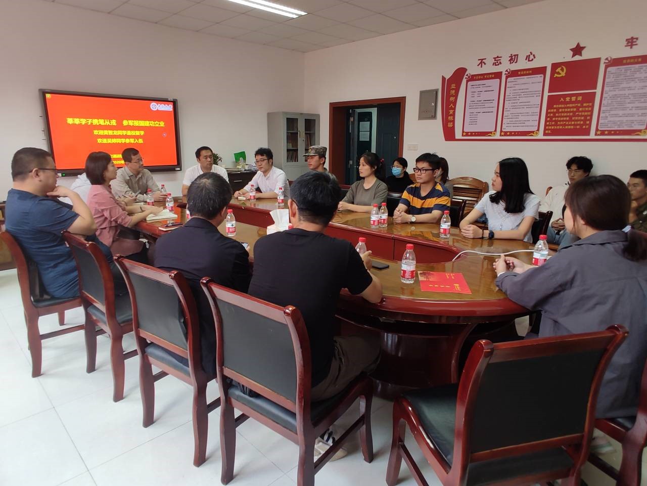 座谈会伊始,两位同学分享了自己的心得体会。龚智龙同学真诚地分享了自己在安徽某野战部队陆军炮兵连的两年军营生涯,他表示军营生活是一种截然不同的体验,一切行动听指挥,时时处于高压之下,面对高强度的体能训练,他都坚持下来,军绿生涯很好的磨练了一个人的意志力,也增强了他的体魄。同时通过对国家国防、部队建设的深入了解,他也对我国的国防建设充满信心。吴婷同学分享了自己参军入伍的初衷,响应国家强军建设的号召,在成长环境的熏陶下,在家人朋友的鼓励下,她一直没有放弃从军报国的梦想,希望在部队锻炼自己的意志品质。