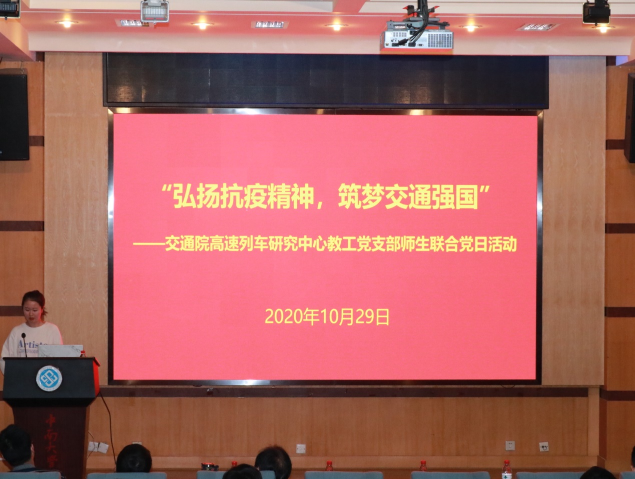 党委的领导下,10月29日晚上六点半,交通院高速列车研究中心教工党支部联合必赢亚洲
