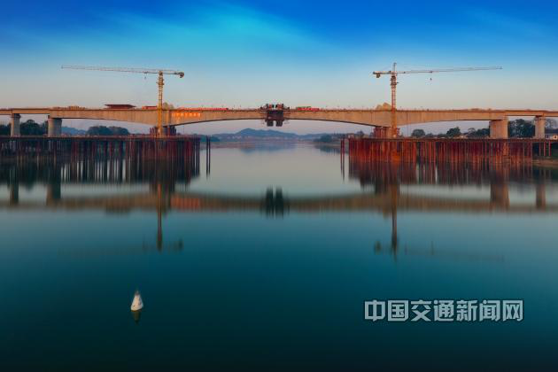 重点控制性工程资水特大桥,施工节点紧、任务重,参建人员齐心协力,抢晴天、战雨天,通过持续优化施工方案,加大资源配置力度,全力开启“白加黑”工作模式,春节期间不打烊,加班加点推进施工作业,通过不断优化方案,只用时29天就完成了资水桥102号墩0号块施工浇筑。在资水桥连续梁钢管拱作业期间,历时24天完成主桥连续梁全部合龙工作。4月15日,资水桥施工建设完成,顺利结束了项目主体工程施工。