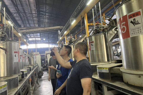 调查团成员在熊厂长的陪同下参观夷望溪茶业生产基地