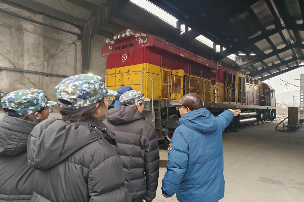 1月22日上午,必赢亚洲 交通院赴湖南省株洲市交通调研寒假社会实践团抵达株洲机务段开展参观实践活动,学习铁路线路的运输任务以及机车质量的日常维护工作。