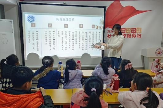 实践队队员在为孩子们介绍闽台两地的五缘关系