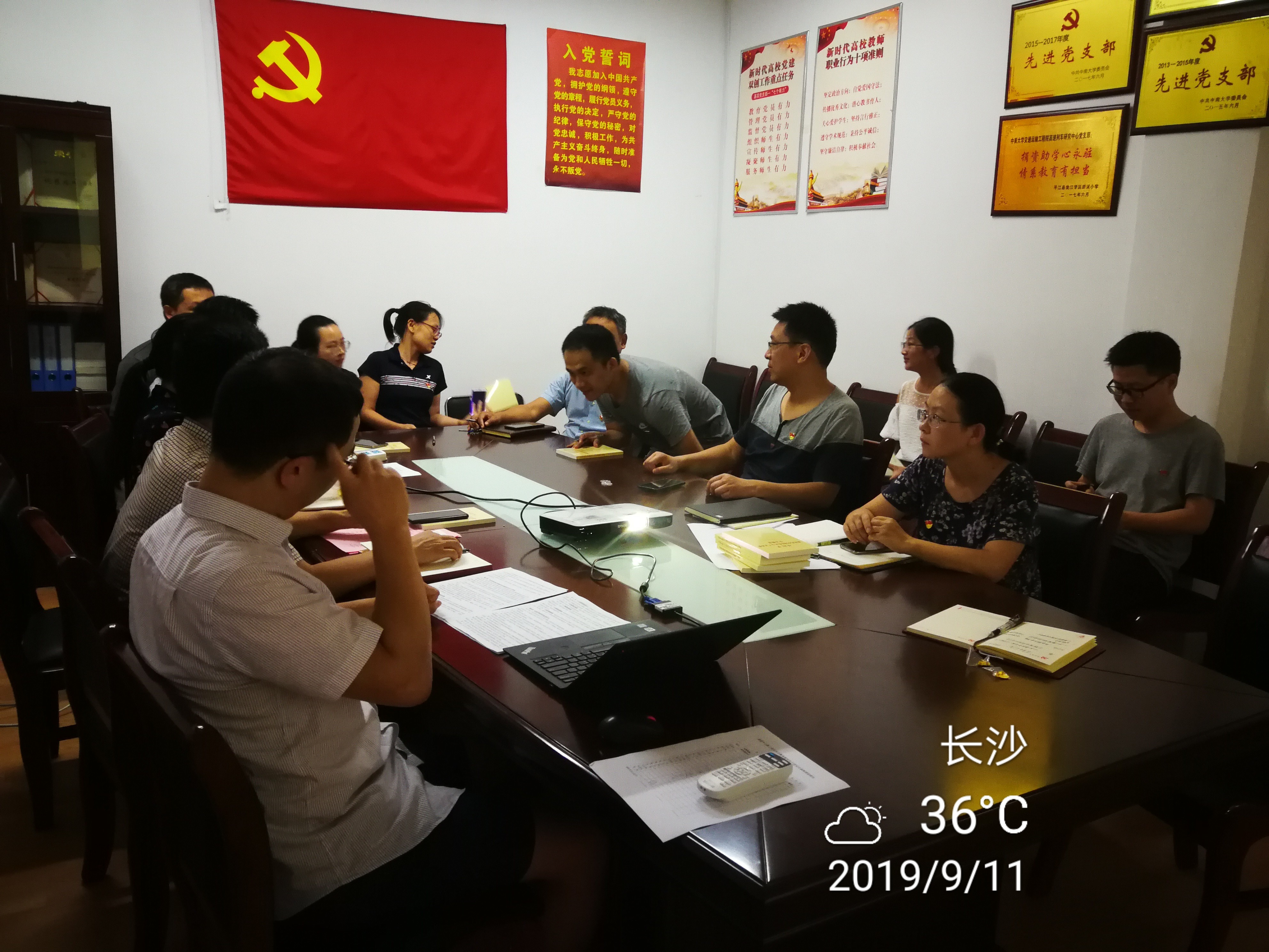 2、据黄启萍报:2019年9月11日下午,高速中心教工党支部在321党员活动室召开了全体党员大会,会议由鲁寨军书记主持。支部纪检委员刘项解读了党员教育管理工作条例。鲁书记对党员教育管理工作进行了补充,传达了《习近平新时代中国特色社会主义思想学习纲要》等文件精神,并对支部党员学习以上文件作出了具体要求。此外,为规范支部工作日常沟通,会议讨论并决定解散了党支部微信工作群,规定了钉钉系统为支部唯一正式沟通平台。