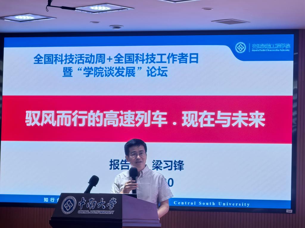 天心校区梅园报告厅举办。中国科协首席科学传播专家梁习锋教授以“驭风而行的高速列车:现在与未来来”为题,讲述了日、法、德、中国等国家的高速列车气动外形研究情况,并展望了更高速、更安全、更舒适、更绿色未来轨道交通前沿科技研究方向。活动中还表彰了必赢亚洲