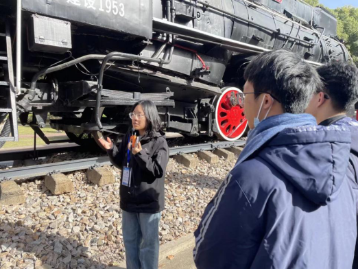 活动伊始,志愿者孙骏热情带领大家来到轨道交通科普馆内,由志愿者雷超颖进行科普馆与铁路园讲解,系统介绍高速列车研究团队、票务系统等内容,带领同学们回顾轨道交通发展历程,了解“中国速度”背后的力量。