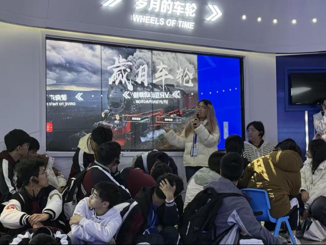 在铁路园,讲解人员以不同时代机车实物为切入点,引导学生对比蒸汽机车、内燃机车、电力机车在动力方式、运行效率和技术水平上的差异。通过现场讲解,学生们认识到铁路技术进步不仅体现在速度提升上,更体现在能源利用、运行稳定性和工程系统协同能力的不断优化。