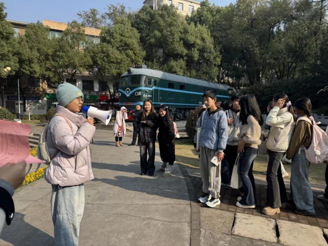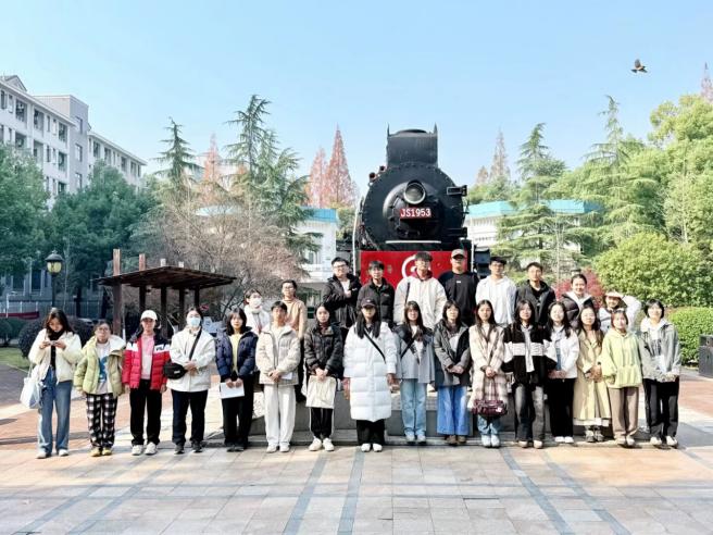 在铁路园,团支部成员近距离参观了蒸汽机车、内燃机车、电力机车实物装备。讲解人员结合机车背后的历史背景和时代使命,讲述铁路在不同历史阶段所承载的社会功能和精神内涵。同学们在实物观摩中,进一步体会到铁路不仅是工程成果,更是中国工业文明发展的重要文化符号。