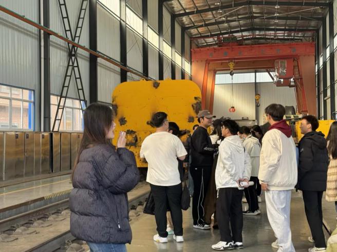 在轨道车辆实车碰撞试验室,讲解人员介绍了列车安全试验的基本内容与研究意义。通过对防爬装置、吸能结构和试验流程的讲解,同学们认识到科技进步离不开严谨求实的科研态度,也深刻体会到工程技术背后所承载的社会责任与公共安全使命。