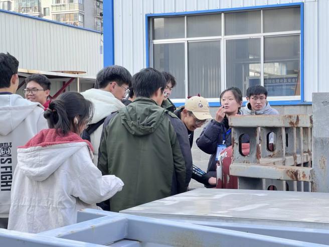 在轨道车辆实车碰撞试验室,讲解人员介绍了实车碰撞试验平台的构成及关键技术原理。通过对防爬装置、吸能结构及碰撞试验流程的讲解,同学们认识到轨道交通安全并非经验判断,而是建立在大量实验验证和数据分析基础之上的科学结论,进一步理解了严谨科研态度在工程实践中的重要性。