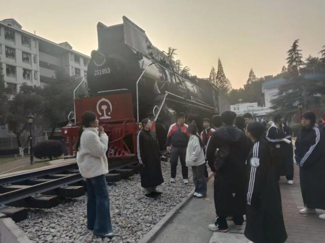 在铁路园,讲解人员结合蒸汽机车、内燃机车、电力机车,向来访师生介绍了不同类型铁路机车的结构特点和技术演进。通过实物观摩与讲解,学生们进一步认识了轨道交通装备在实际运营中的应用场景,对未来可能从事的设备维护、检修与运行相关岗位形成了更加直观的认知。